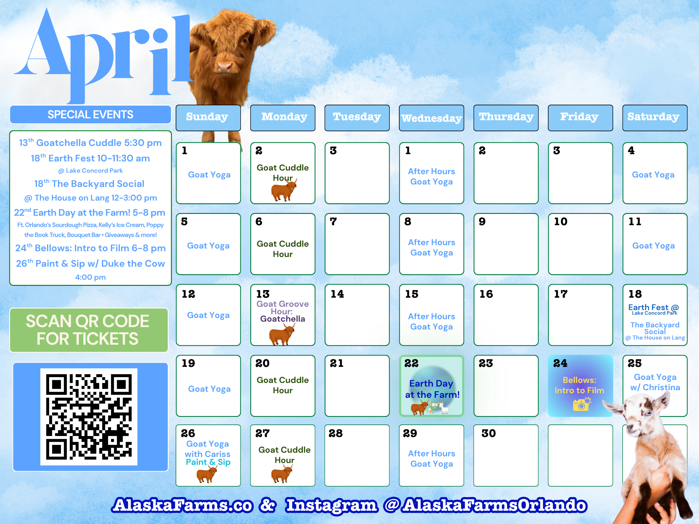 Experience the unique charm of Alaska Farms Orlando, where we offer engaging events featuring our lovable goats and other farm animals. From pop-up events to interactive sessions, our farm is a haven for unforgettable experiences, all the heart of Central Florida. Come join us and create lasting memories. Tickets below!